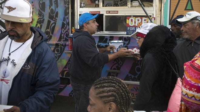 Michael Reyes, owner of the Paz Cantina food truck, said he has a social responsibility to offer free breakfast burritos and bowls to people who could use them. He said he has heard Phoenix's street-feeding message but has no plans to stop his weekly "Grateful Tuesday" food-distribution event outside the Human Services Campus.